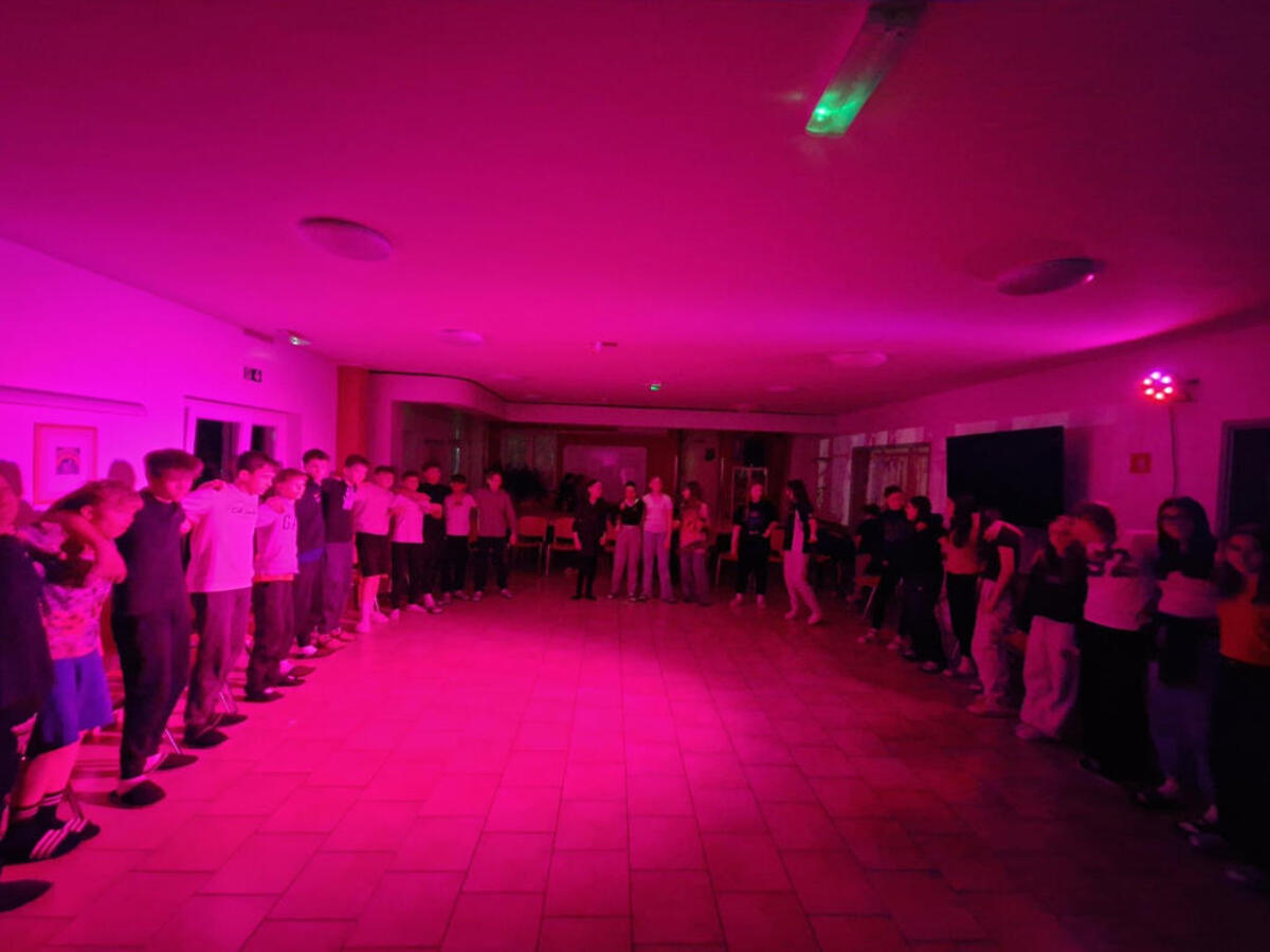 Zvečer pa nas je čakala še prava žurka. Malo smo zaplesali, nekateri bolj pogumno, drugi malo manj, vsi pa smo se zabavali. Čeprav smo bili utrujeni, je bilo v sobah še precej smeha in druženja, zato smo zaspali malo pozneje, kot so imele učiteljice v planu.